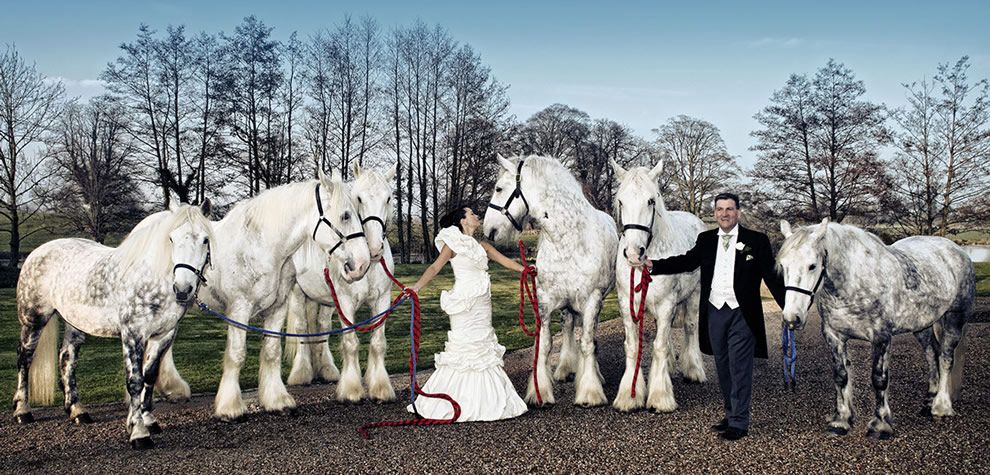 "Just wanted to say a late but massive Thank you for you all for providing the horse and carts for our wedding on the 26th September ! You all looked amazing ! The photos are back from David and everyone has commented on how stunning your shires looked on the day . There immaculate behavior too ! We will be having some of there photos blown up onto canvas as David photographed them fantastically ! So I would be happy to email them over to you if you wish . I hope all is well with you all and I wish you all the best for the future . Anytime your down our way do not hesitate to call into us down at the farm and collect some hay or just a place to stop . I would happily recommend you to anyone ! I'd be very tempted to provide a retirement home for your beautiful shires- hint hint ! Lol .